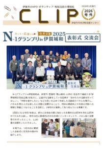情報紙CLIP 伊賀市市民活動支援センター情報紙「CLIP」 2026.02.19 伊賀市市民活動支援センター情報紙「CLIP」 年3回、情報紙「CLIP」を発行しています。 支援センター主催の研修や市内で活動するNPO団体の紹介などを掲載しています。 NEW!! CLIP 号外N-1GP2025.pdf CLIP 19-2026.1.pdf CLIP 18-2025.9.pdf CLIP 号外N-1GP2024.pdf CLIP_17-2024.pdf CLIP_16-2024.pdf CLIP_15-2024.pdf CLIP_14-2024.pdf CLIP_13-2023.pdf CLIP_12-2023.pdf CLIP_11-2022.pdf CLIP_10-2022.pdf CLIP_9-2022号外.pdf CLIP_8-2021.pdf CLIP_7-2021.pdf CLIP_6-2020.pdf CLIP_5-2020.pdf CLIP_4-2019.pdf CLIP_3-2019.pdf CLIP_2-2019.pdf CLIP_1-2018.pdf Post Share Hatena Pocket feedly Pin it